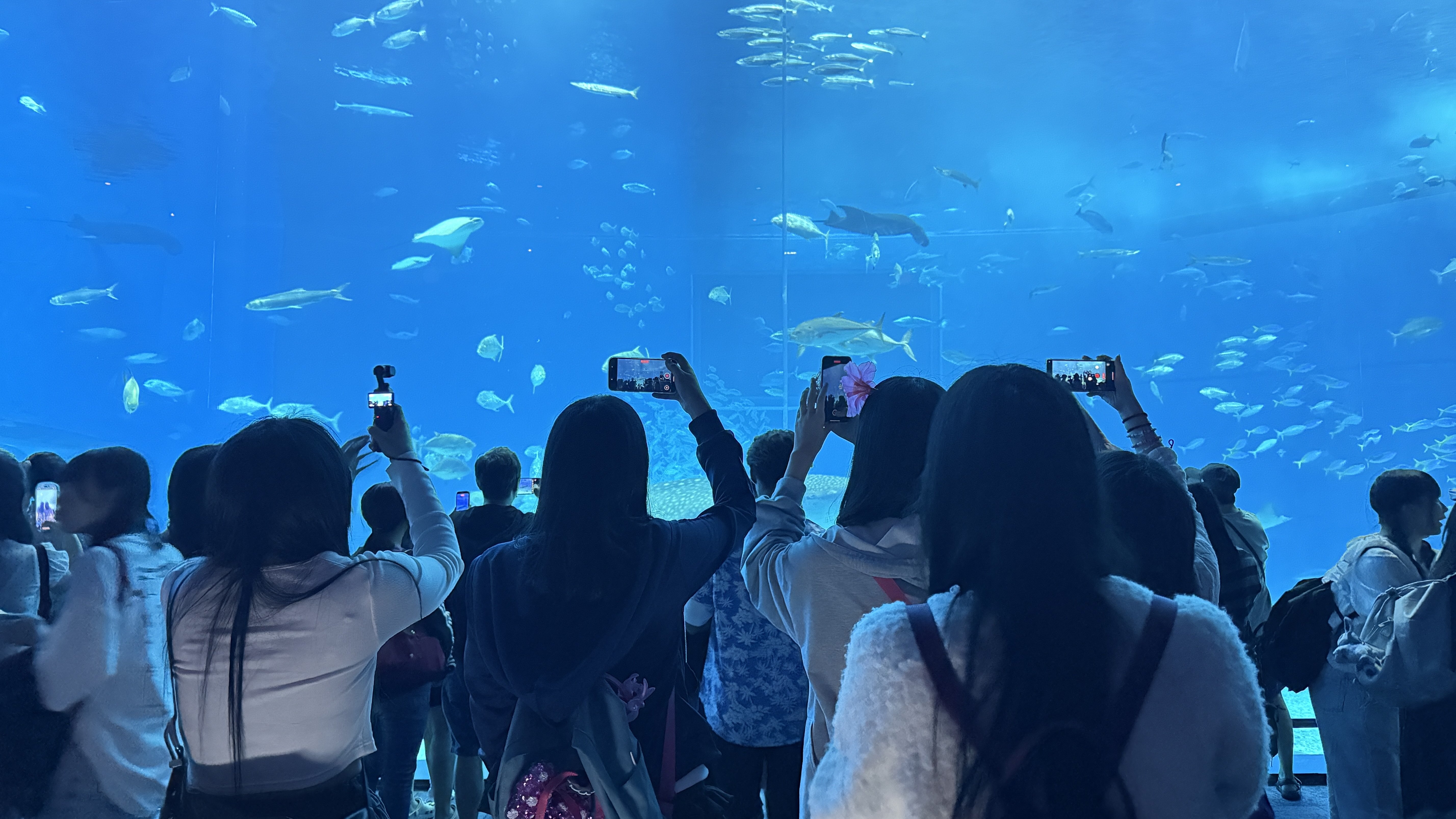 体長8mを超えるジンベイザメが優雅に泳ぐ姿は圧巻で、生徒たちは大きな歓声を上げていました。お土産もたくさん購入し、満足そうな笑顔が見られました。