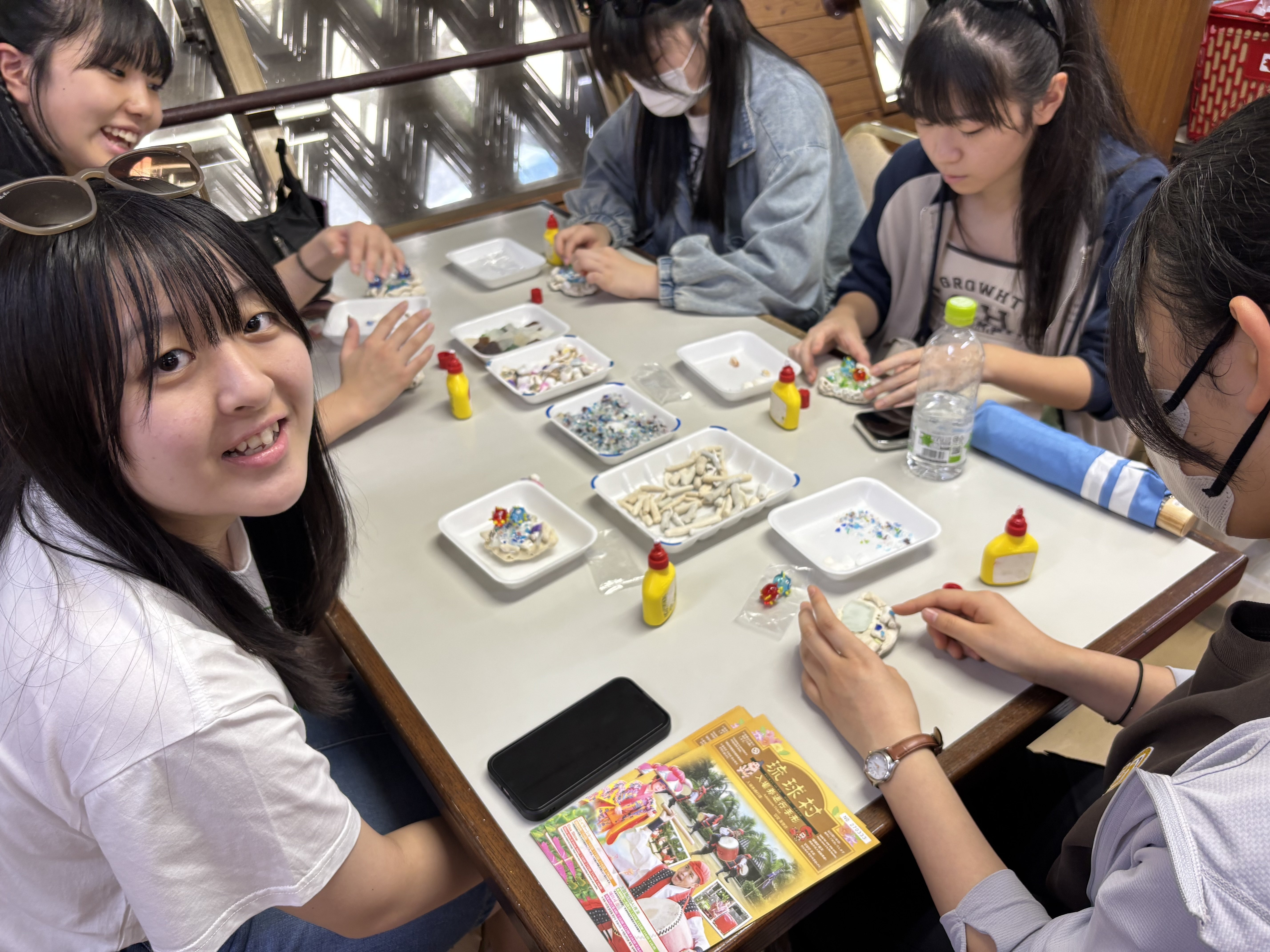 琉球ガラスのグラスへの絵付けや、シーサーのオブジェ、サンゴランプ作りなど、それぞれが思い思いの作品を制作しました。