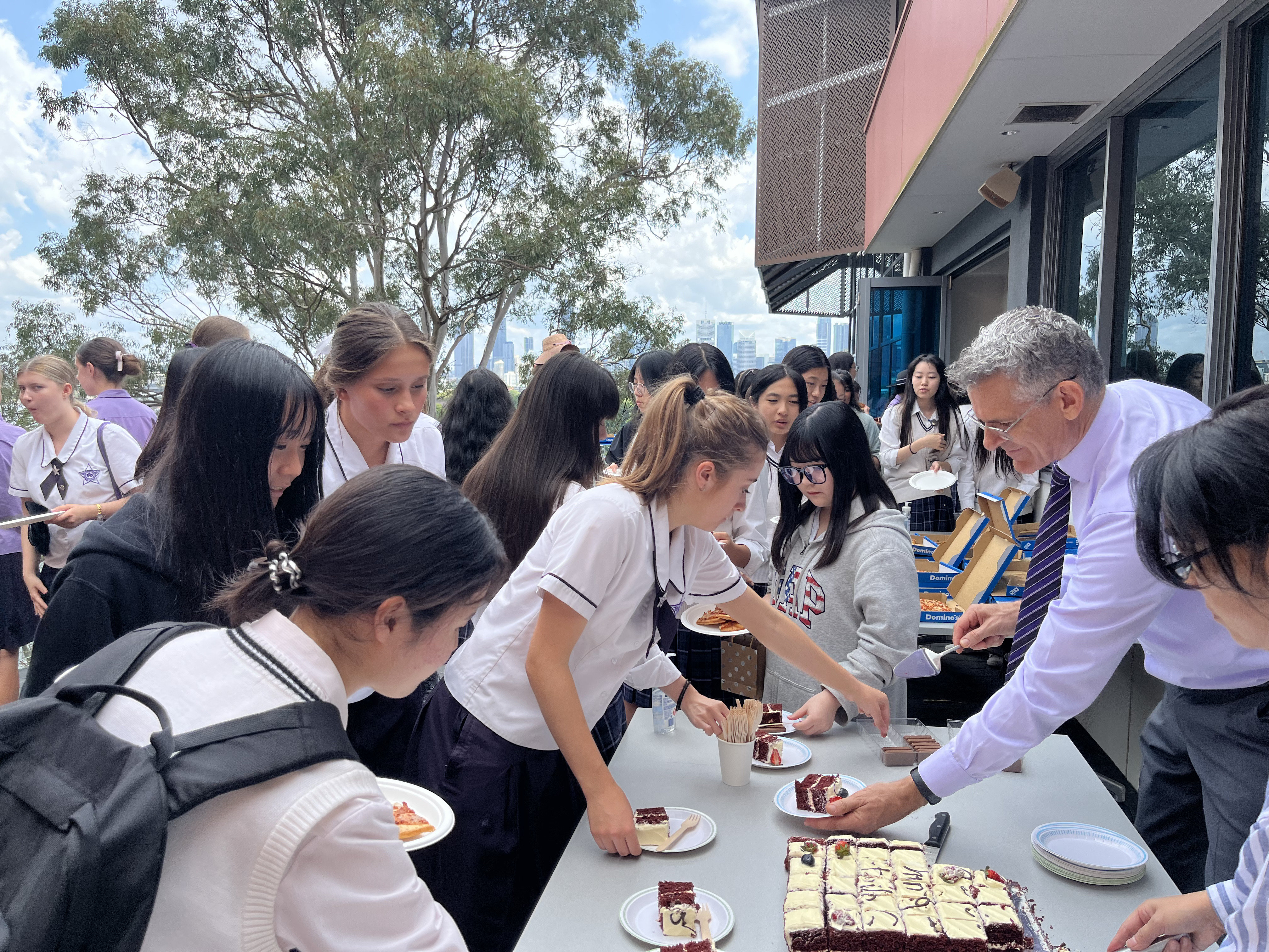 金曜日はLordes Hill College で授業を受ける最後の日です。この一週間、誰も遅刻欠席することなく、熱を出した生徒もいなく過ごすことができました。午前中はESLを受け、ランチの時間にFarewell Party(お別れ会)を開いていただきました。この日のために用意してくださった本校の名前が入った大きなケーキ、ピザやお菓子を、バディとともにいただきました。本校生徒からは、エトワール学校紹介のプレゼンテーションと、感謝の意を込めて歌を披露しました。